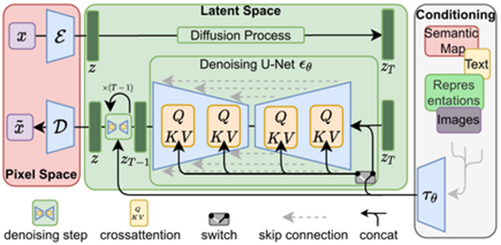 - Variational Autoencoder (VAE): The VAE is used to compress images into a lower-dimensional representation, or latent space, for efficient processing.