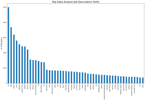 Pictured above is a bar chart of the number of mentions of each type of task in the job descriptions. As shown in the figure, Business Decision Making, Data Pipeline Development, and Data Mining, Predictive Modeling and Statistical Analysis are the most prevalent tasks in the dataset.